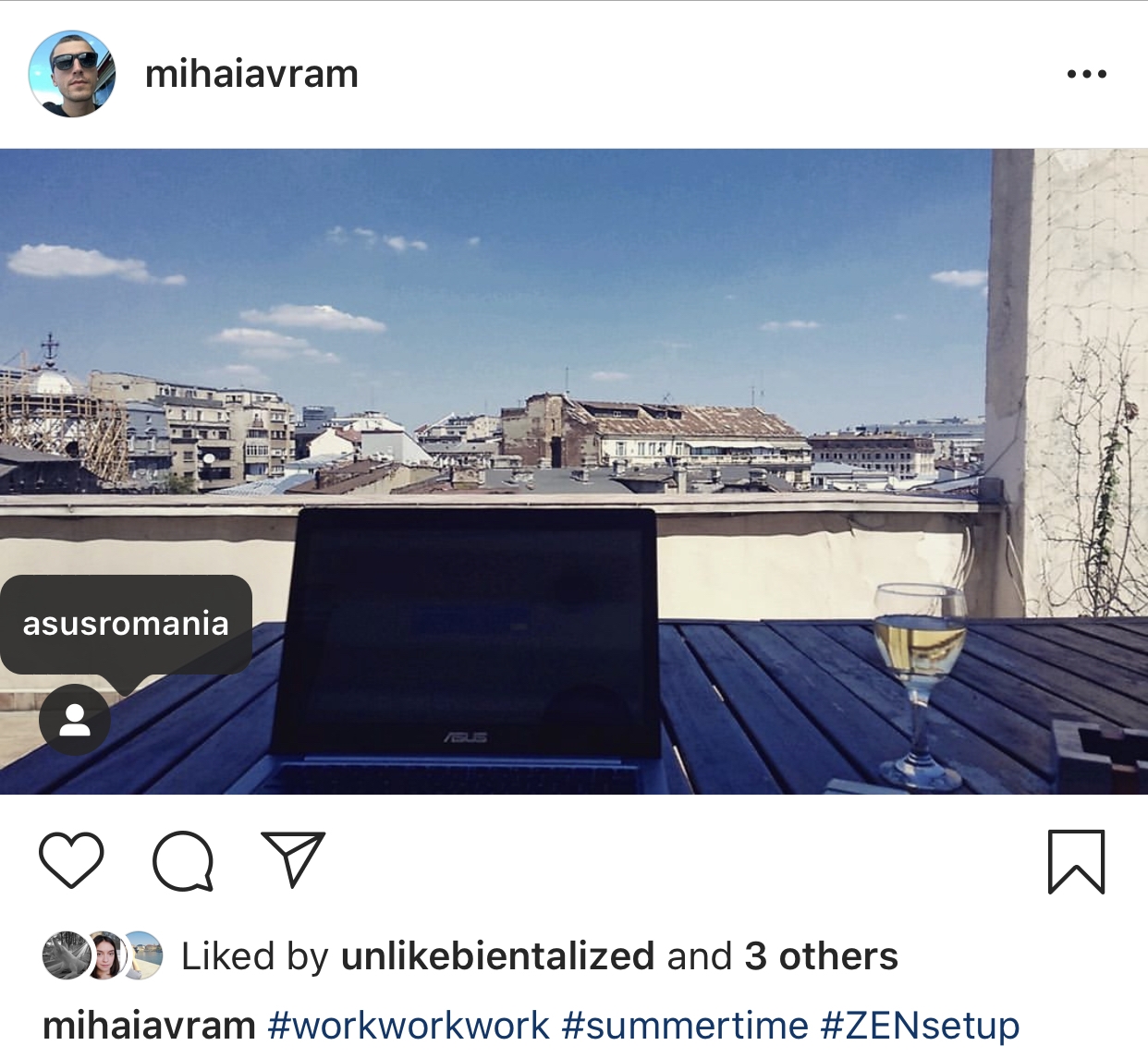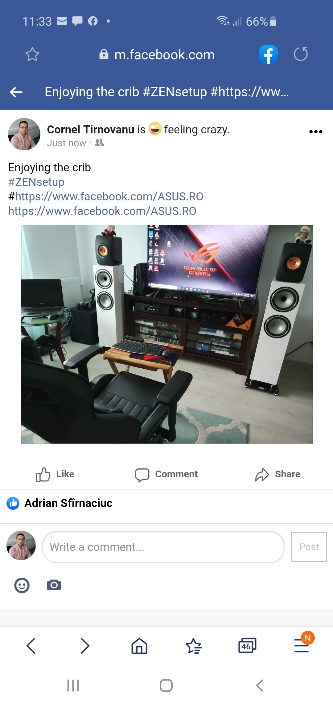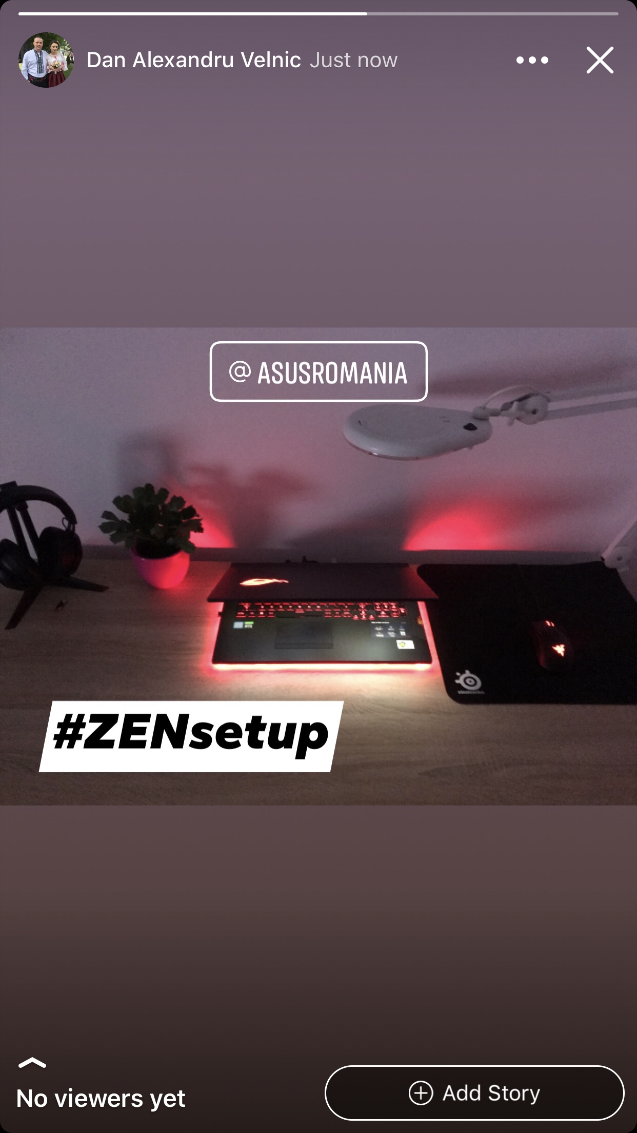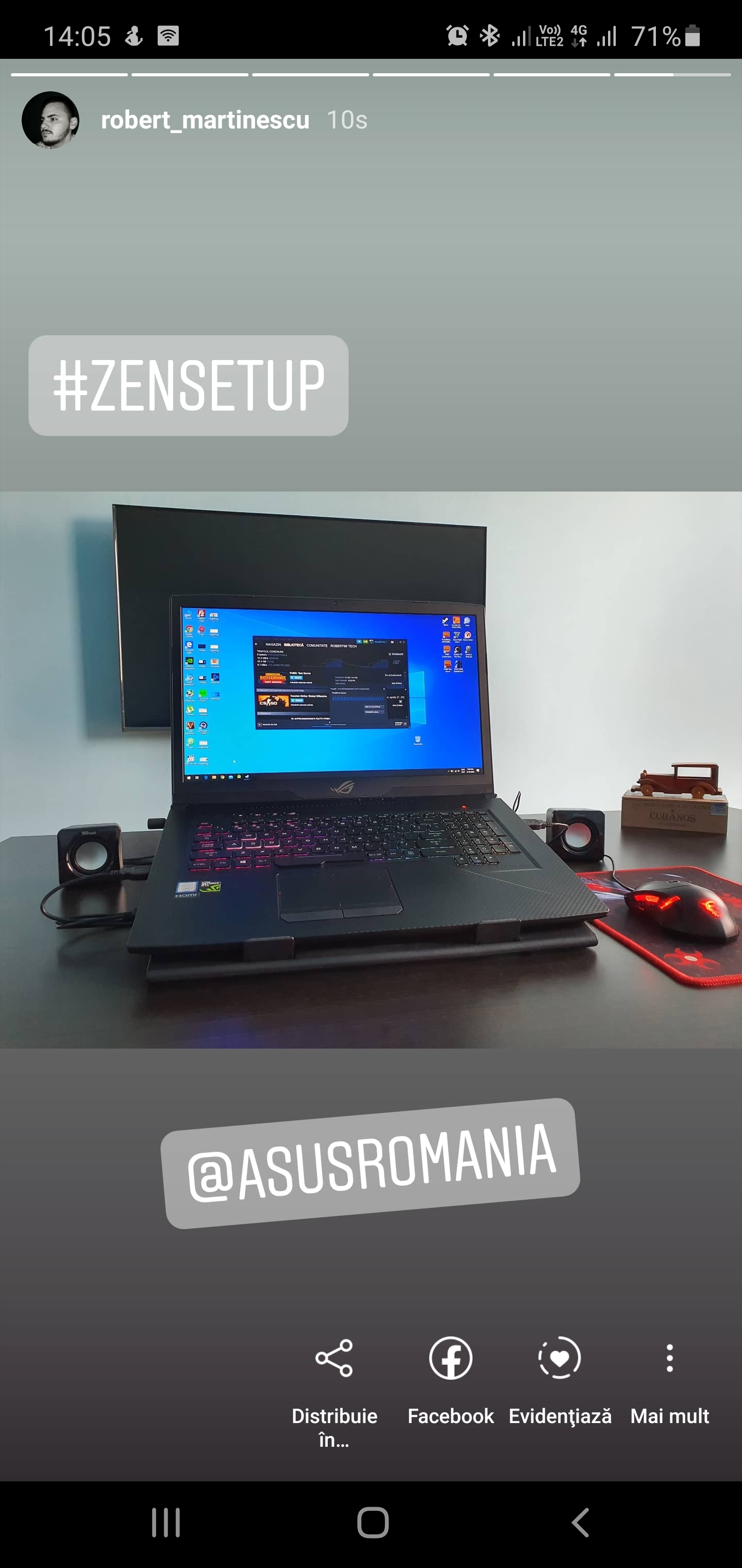 Adauga hashtag-ul #ZENsetup + tag paginii ASUS Romania