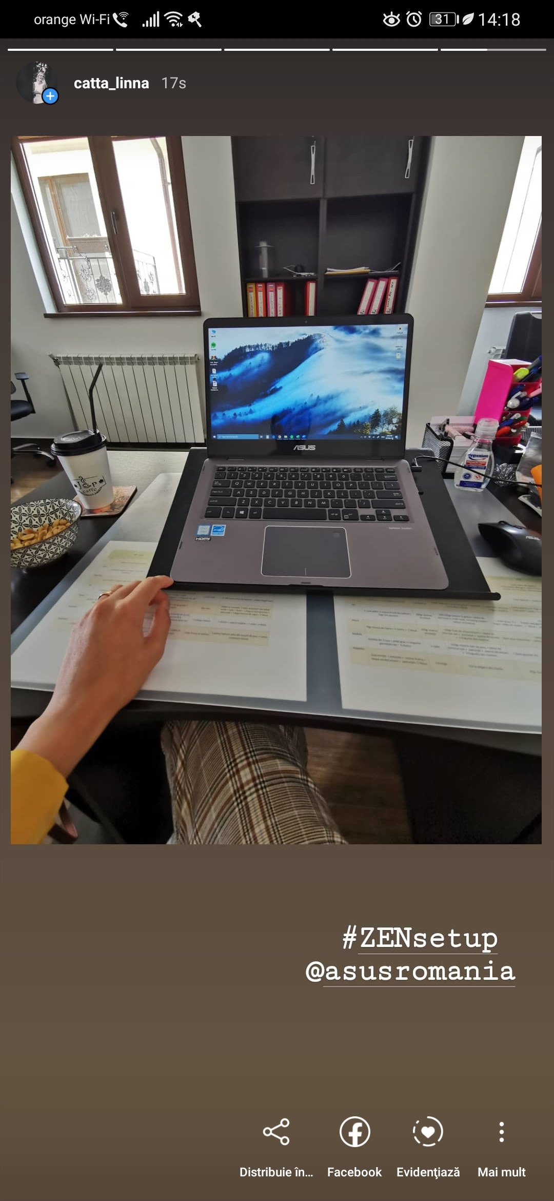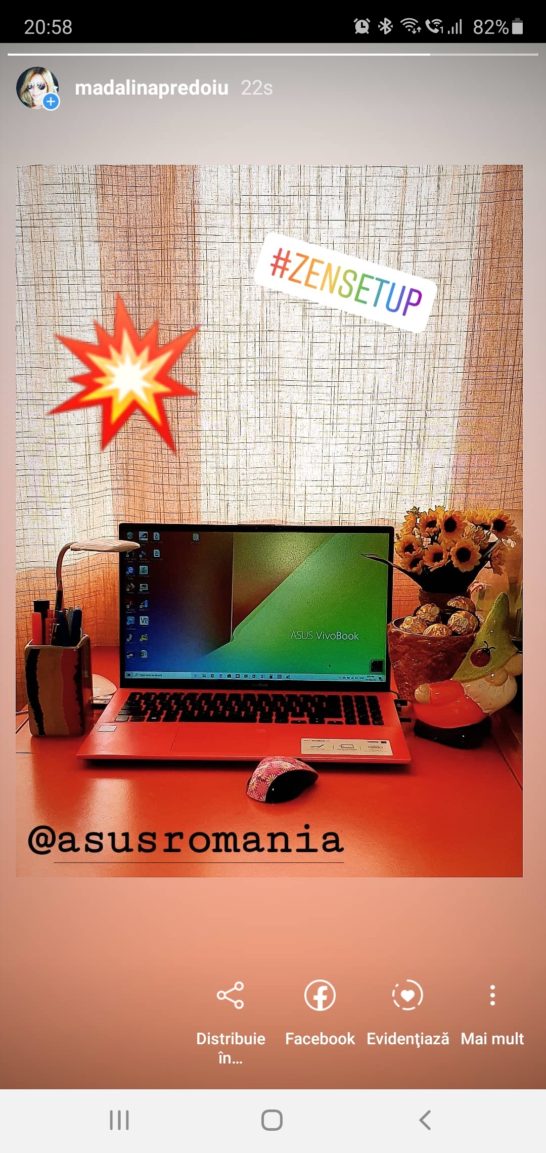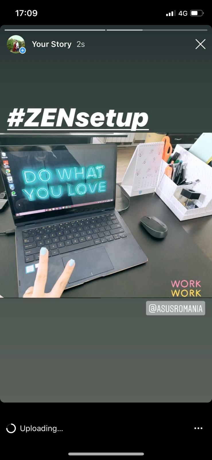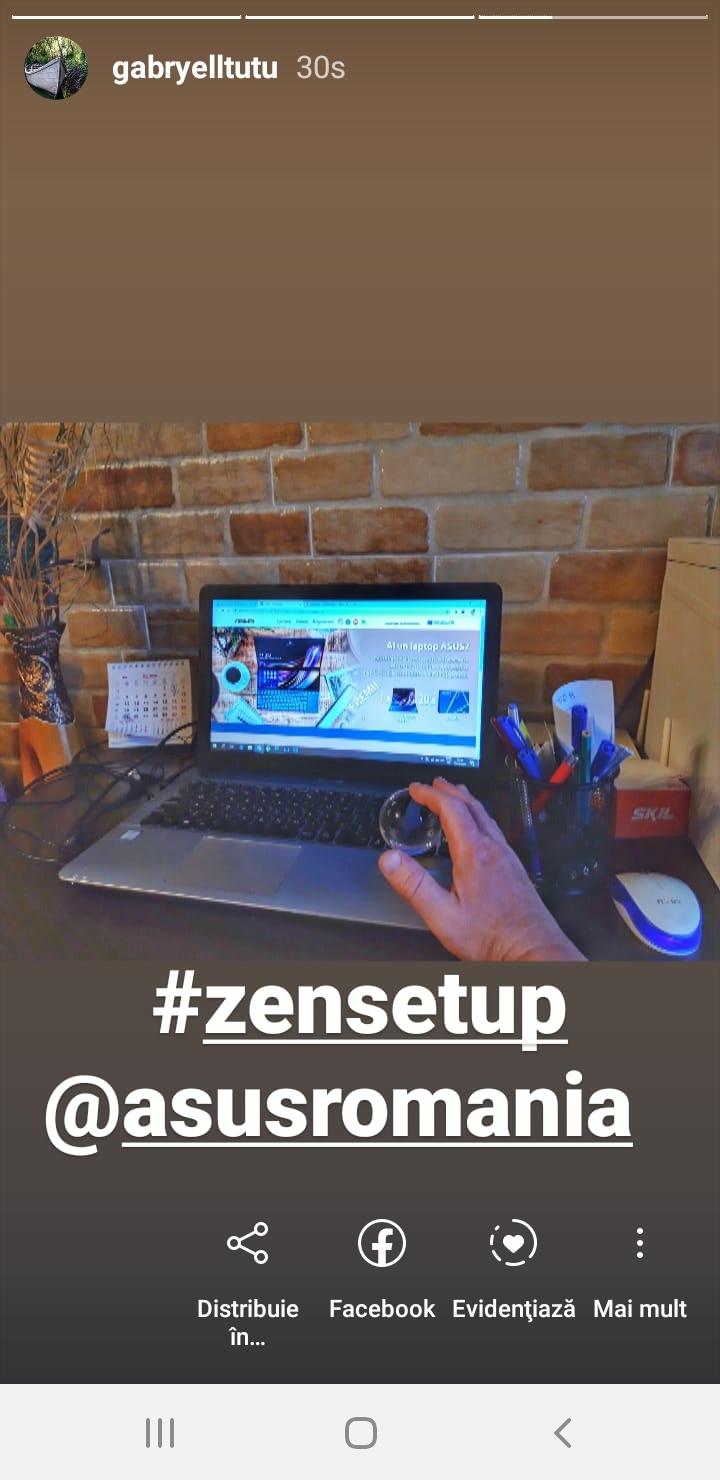 Incarca fotografia cu #ZENsetup-ul tau intr-un Story pe Instagram sau o postare publica pe Facebook.