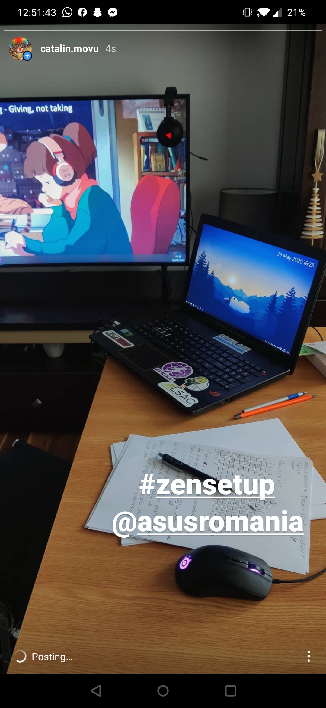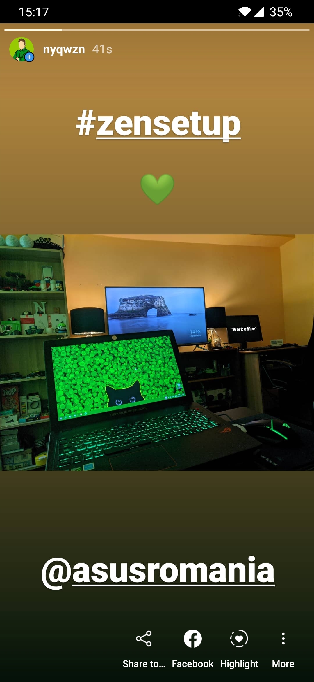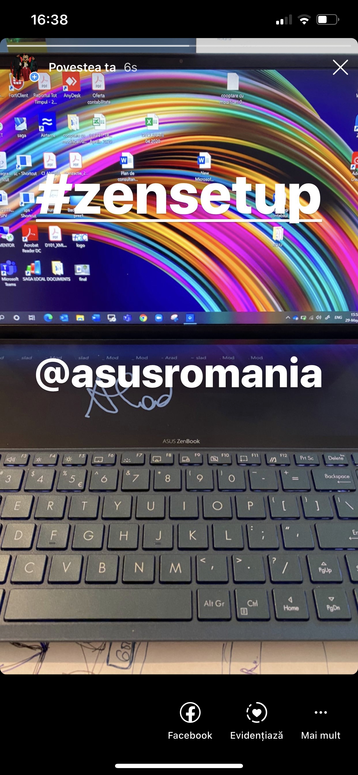 Incarca fotografia cu #ZENsetup-ul tau intr-un Story pe Instagram sau o postare publica pe Facebook.